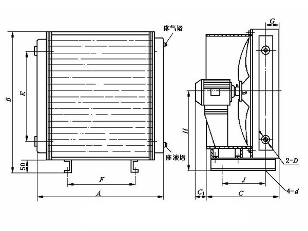FL型油冷卻器是液壓系統(tǒng)常用的一種空氣熱交換器。采用環(huán)境空氣作為冷卻源,用來冷卻管內(nèi)熱油,屬于風(fēng)冷式空氣冷卻器,以“風(fēng)冷”的第一個(gè)字母命名,以換熱面積作為后綴。如FL-5,即表示該型號(hào)為風(fēng)冷形式,換熱面積為5平方米。