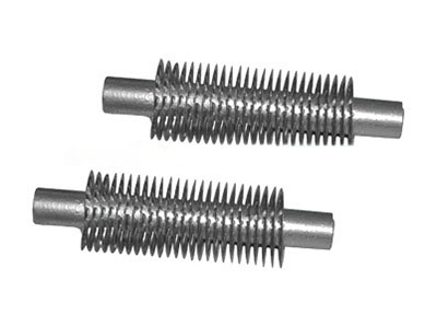 鋼制繞片螺旋翅片管是采用直繞式加工工藝,即在一根優(yōu)質(zhì)無縫鋼管上,通過專用繞片機(jī),把優(yōu)質(zhì)鋼帶靠機(jī)械力緊密、均勻地纏繞在基管外表面,兩端進(jìn)行點焊固定;然后將鋼制繞片翅片管整體進(jìn)行熱鍍鋅處理。