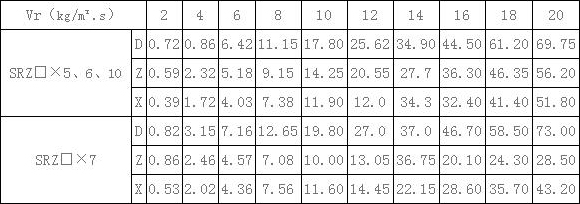 表2、SRZ散熱器在不同空氣重量流速下的空氣通過阻力H(毫米水柱)